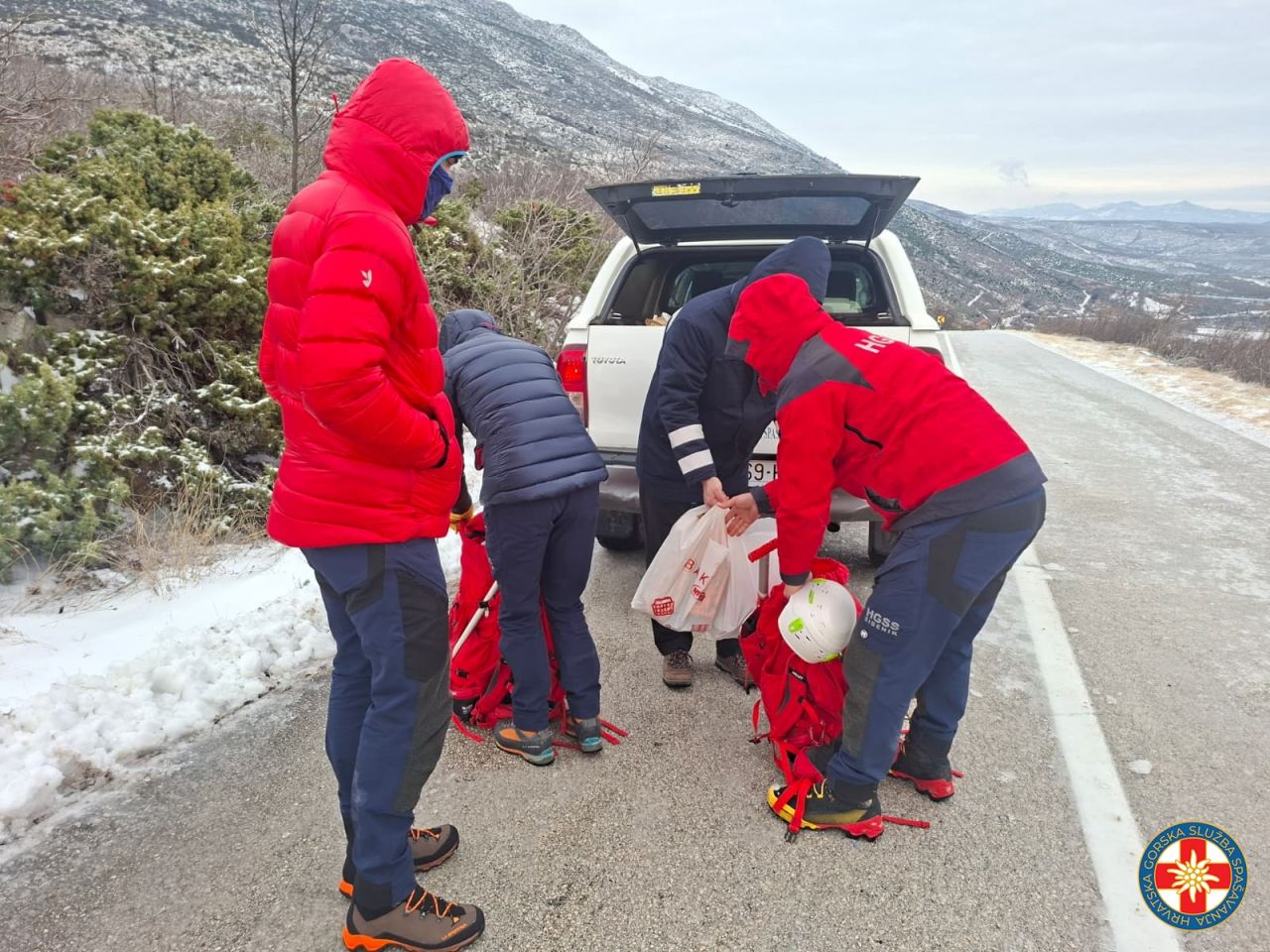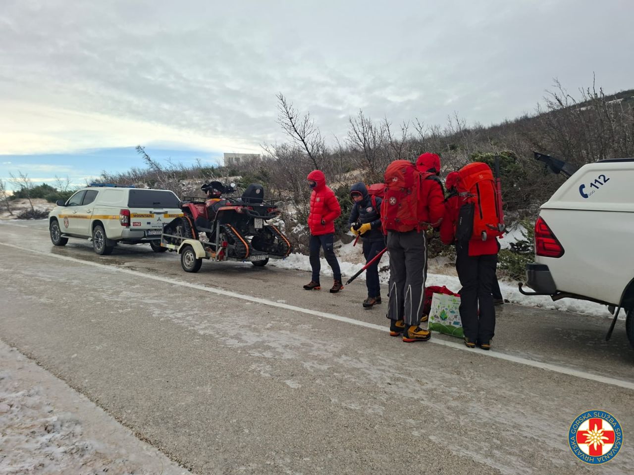 Danas 07.01. HGSS stanica Šibenik imala je nekoliko intervencija. Uslijed snježnog nevremena koje je zahvatilo dalmatinsku zagoru desilo se nekoliko nezgoda pa je trebalo angažirati HGSS. U zadarskoj županiji u selu Muškovci trebalo je dostaviti hranu i lijekove zaposlenicima na vodocrpilištu Zrmanja. Naime, uslijed ledene kiše cestom nije bilo moguće prometovati te je sve trebalo dostaviti pješice. Zajedno sa kolegama iz HGSS stanice Zadar to je uspješno obavljeno, a pri povratku evakuirane su tri osobe i pas koje osobnim vozilom nisu mogli napustiti ovo područje.